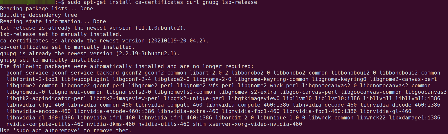 sudo apt-get install ca-certificates curl gnupg lsb-release