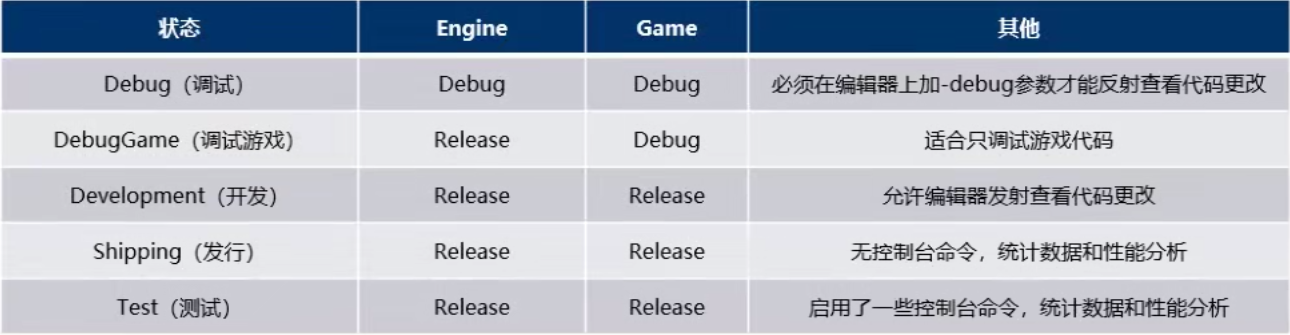 不同的编译类型可以理解为引擎在不同的类型下的监管程度,用以不同的场景