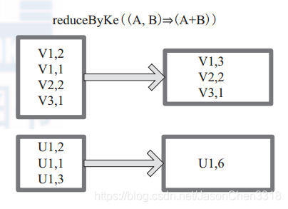 图31中的方框代表一个RDD分区,通过用户自定函数f将数据进行reduce运算。 示例