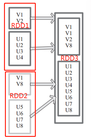 使用 union 函数时需要保证两个 RDD1 与 RDD2 数据类型相同,返回的 RDD3 数据类型和 RDD1 与 RDD2 数据类型相同,并不去重,保存所有元素。如果想去重可以使用 distinct()。同时 Spark 还提供更为简洁的使用 union 的 API,通过 ++ 符号相当于 union 函数操作。