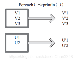 fold和reduce的原理相同,但是与reduce不同,相当于每个reduce时,迭代器取的第一个元素是zeroValue。