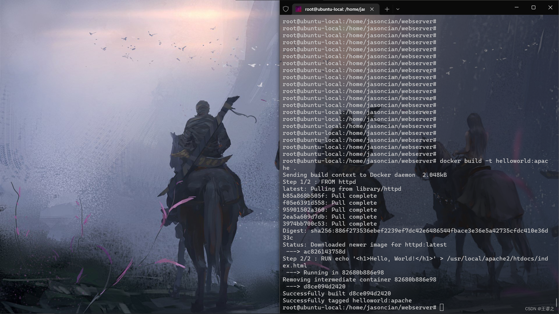 Dockerfile构建一个叫helloworld:apache的镜像,就需要在Dockerfile文件所在目录执行以下指令