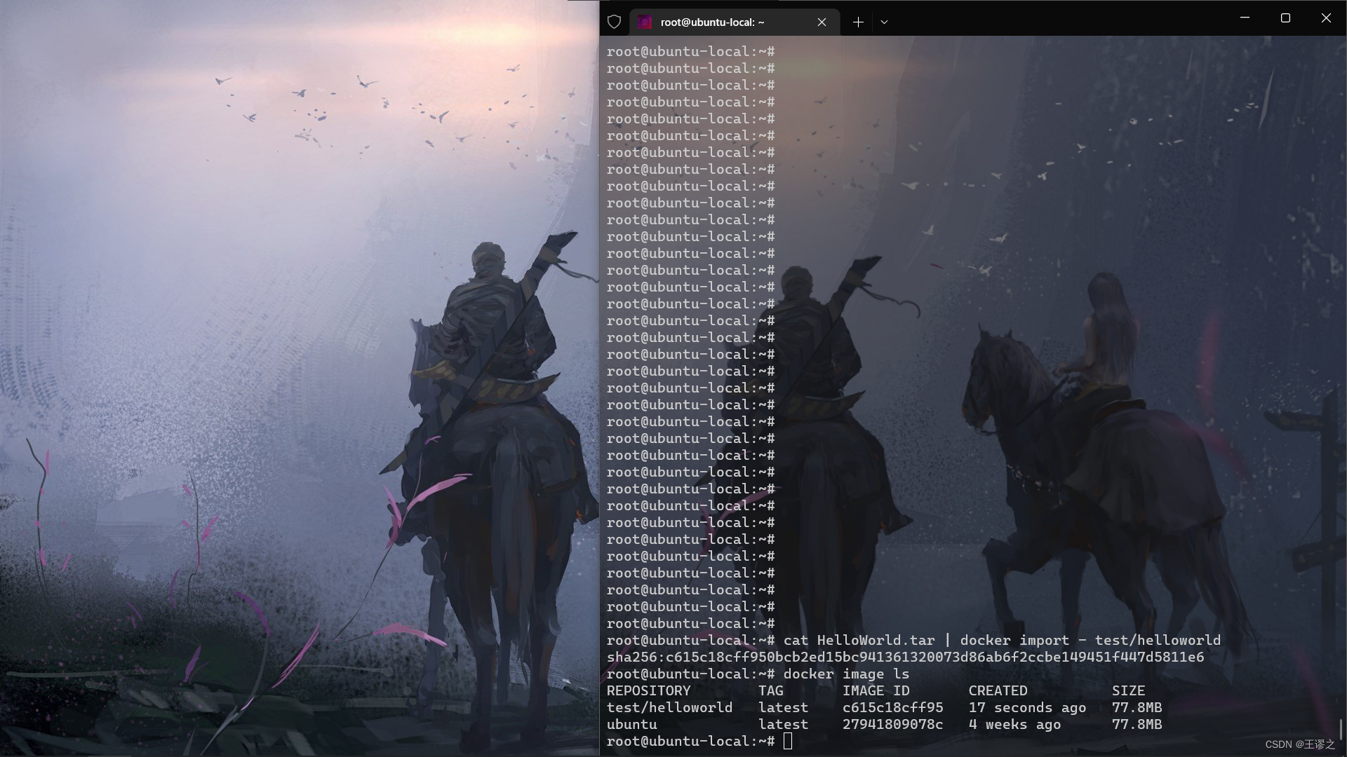 cat HelloWorld.tar | docker import - test/helloworld