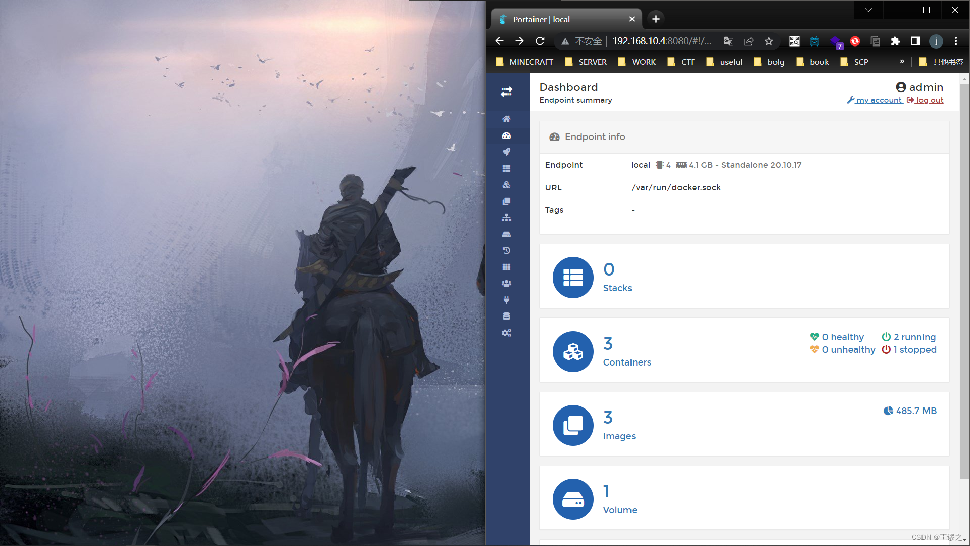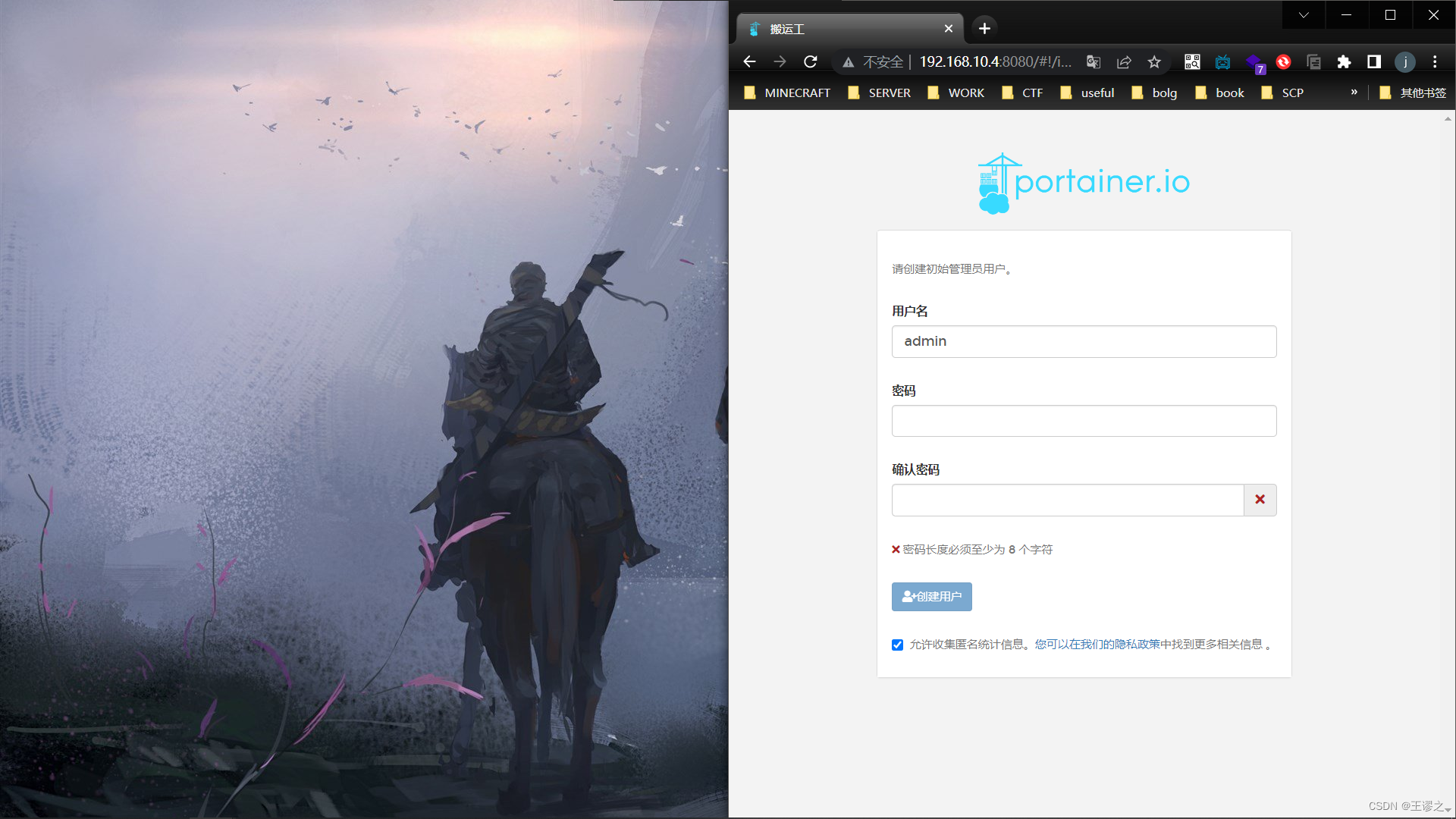 创建好账户就可以进行图形化管理docker了