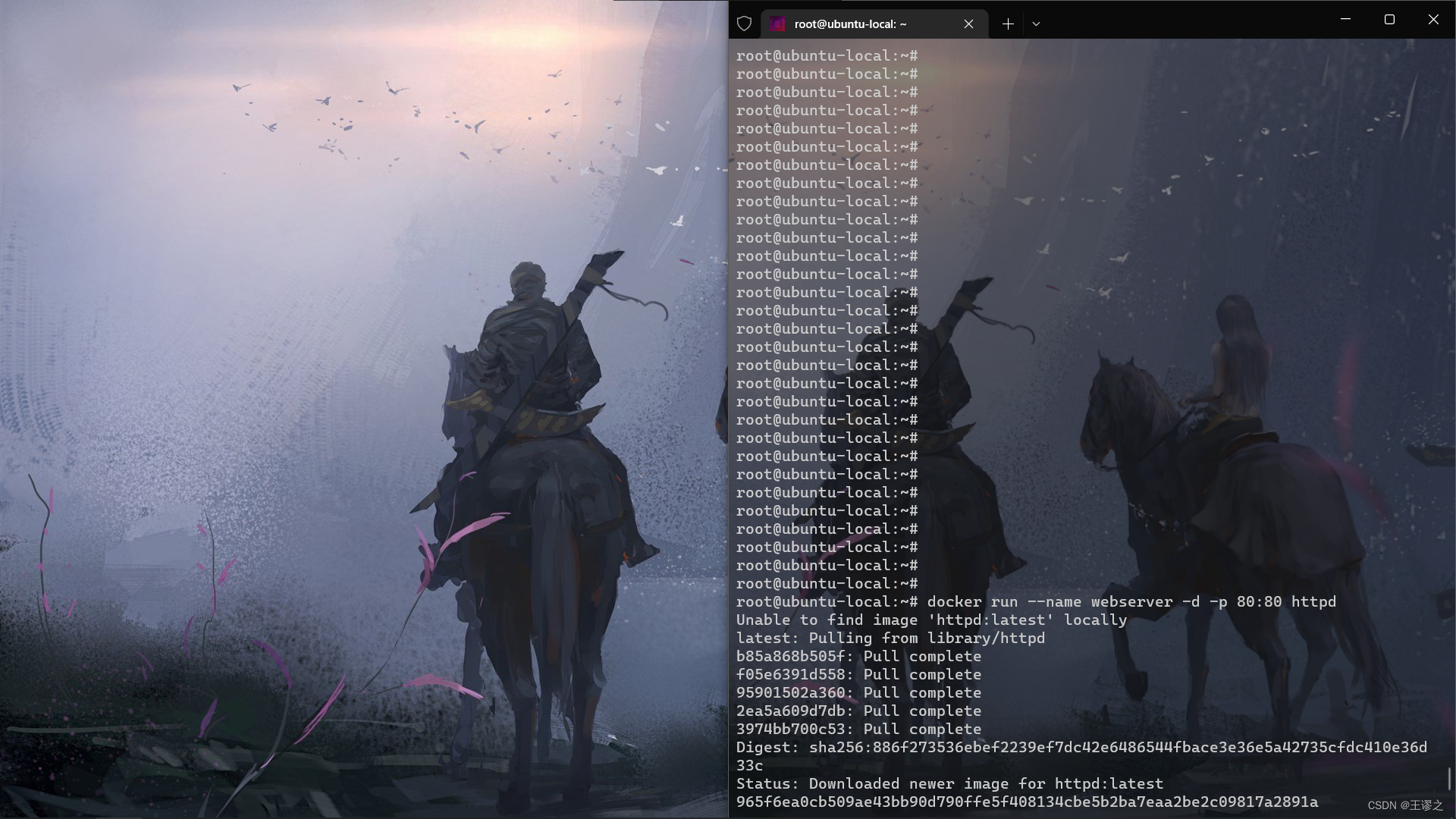 webserver的容器,并且映射了 80 端口,这样就可以直接去访问这个容器里的apache服务器