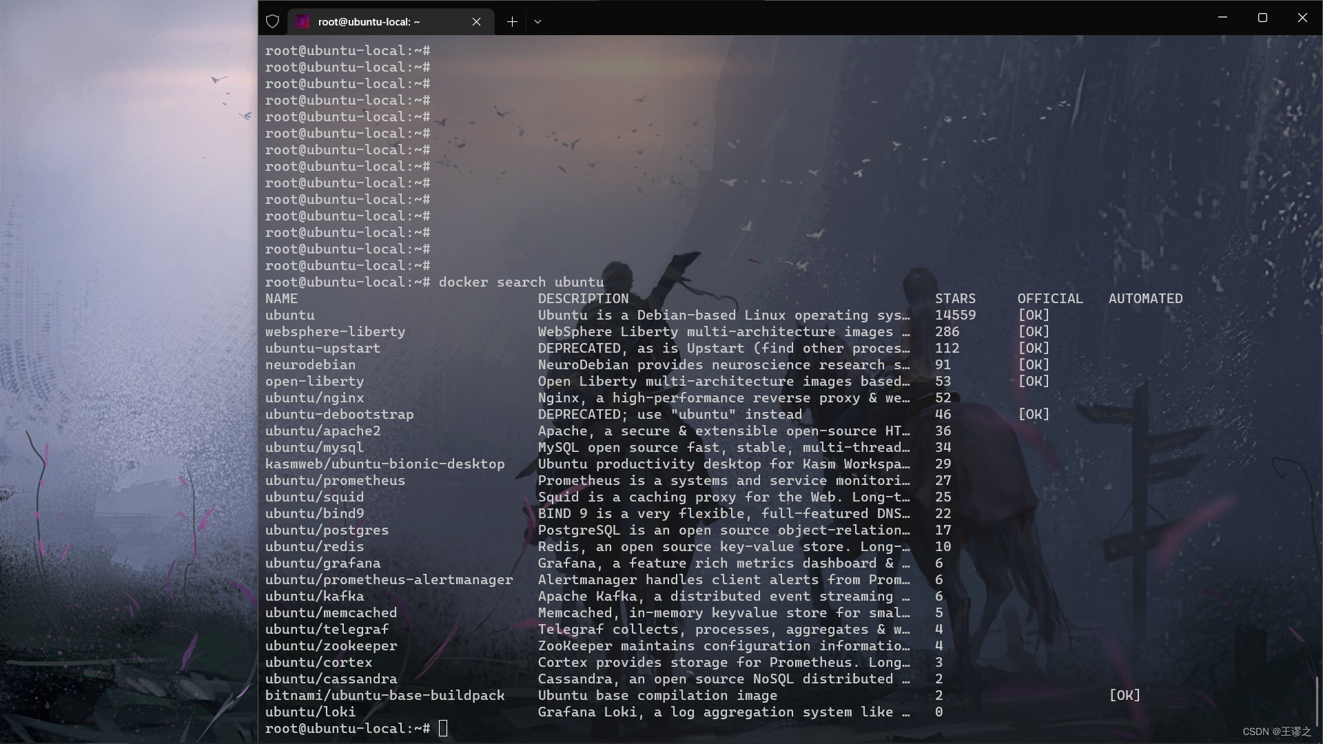 如果没有找到对应服务的镜像,官方镜像中还提供了一些更为基础的操作系统镜像,如 ubuntu、debian、centos、fedora、alpine 等,这些操作系统的软件库为我们提供了更广阔的扩展空间。