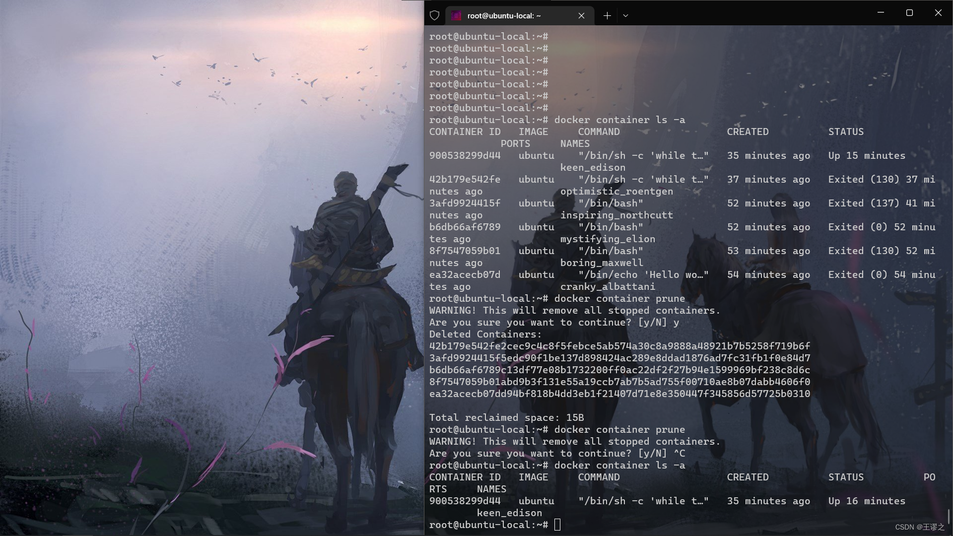 使用container prune命令来清除所有处于终止状态的容器