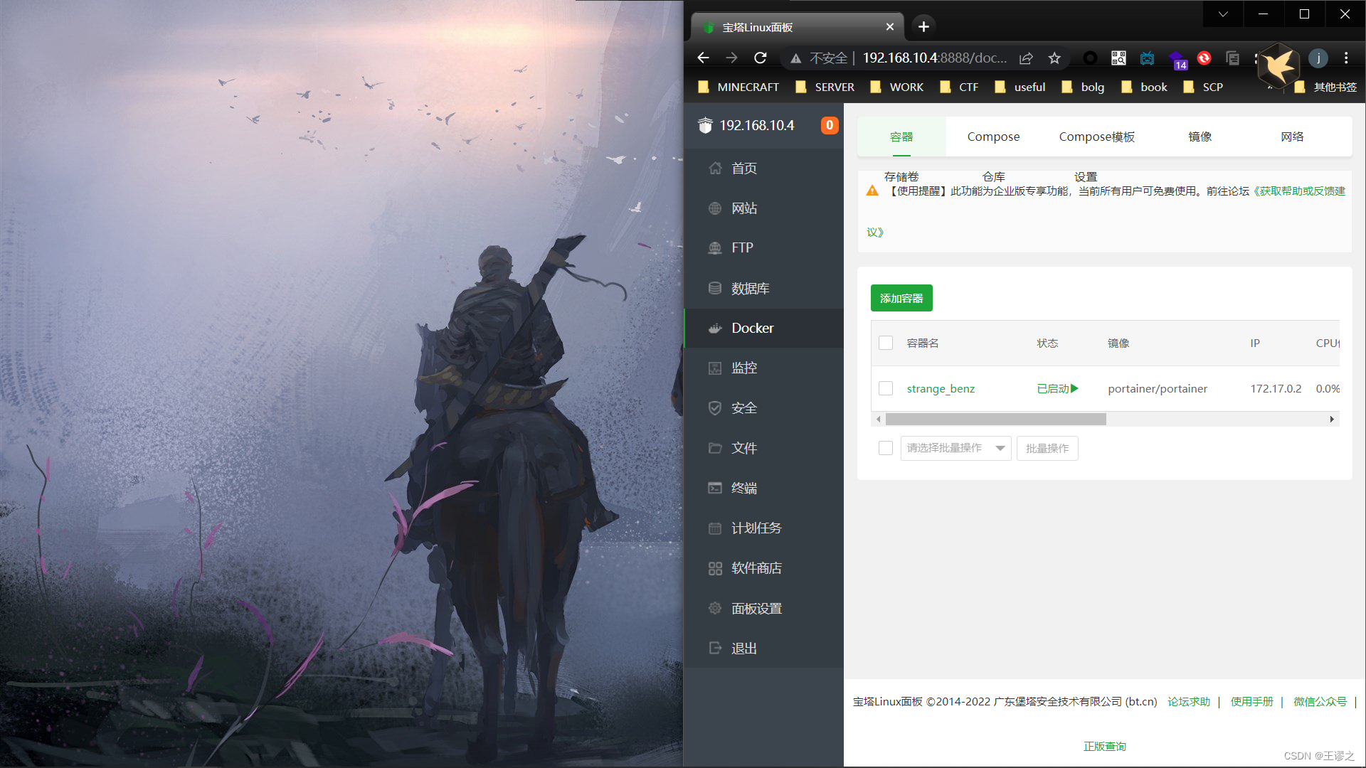 最后在这里再推荐一下宝塔面板也有管理docker的功能: