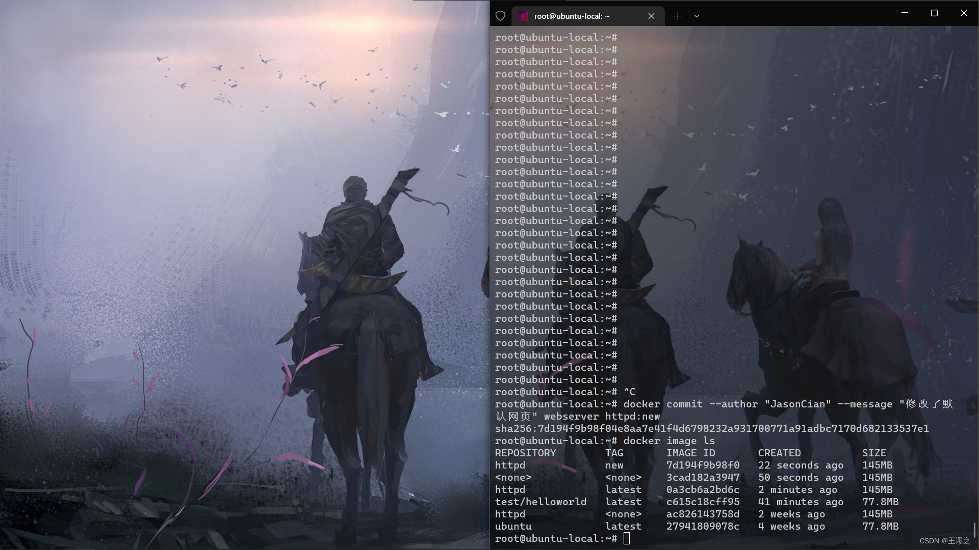 docker commit --author "JasonCian" --message "修改了默认网页" webserver httpd:new