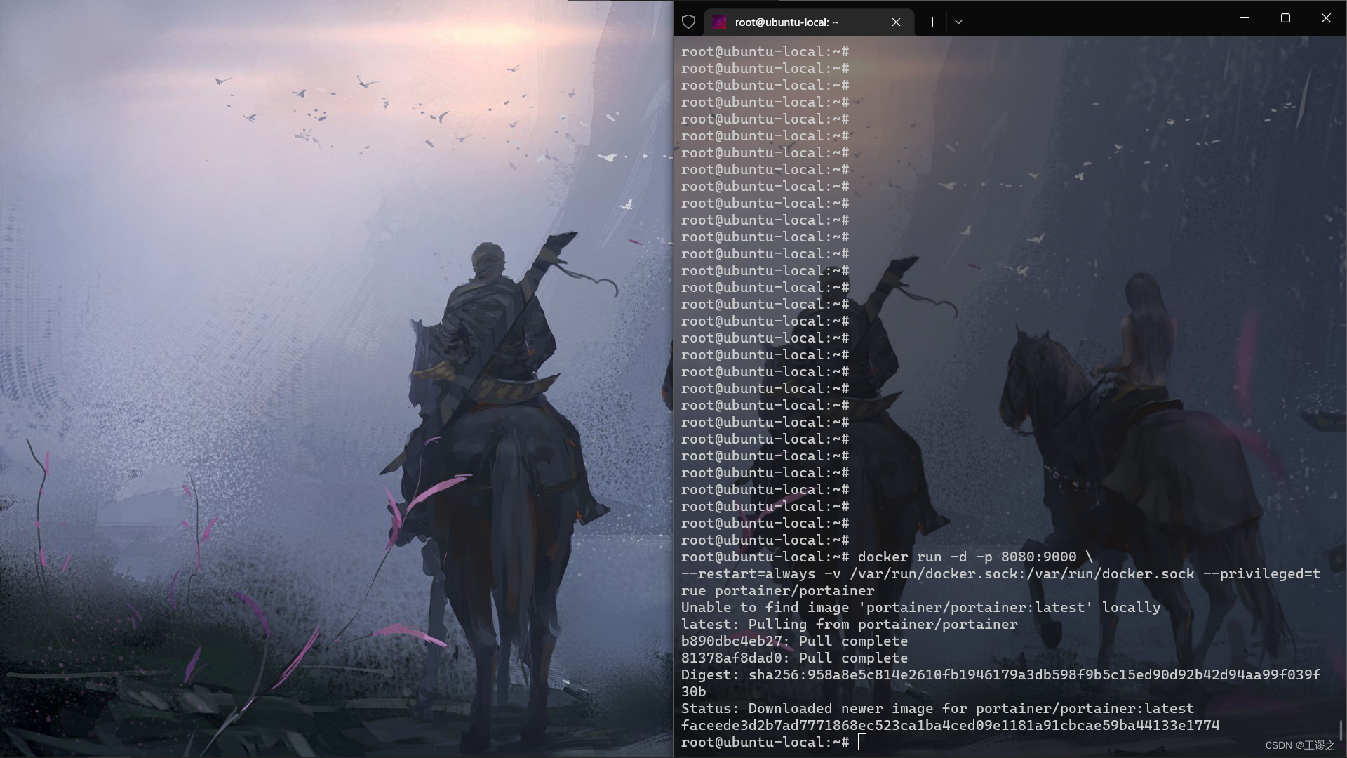 docker run -d -p 8080:9000 \ --restart=always -v /var/run/docker.sock:/var/run/docker.sock --privileged=true portainer/portainer
