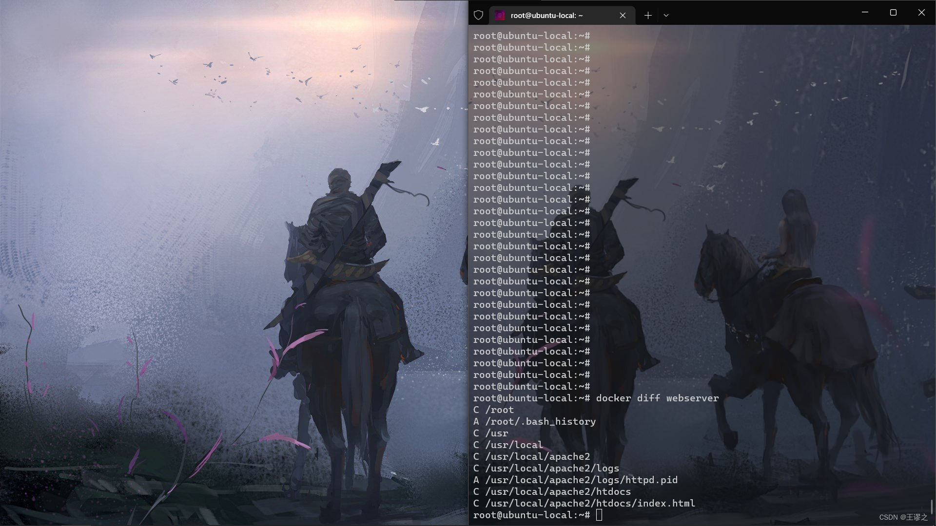 docker diff webserver的结果,你会发现除了真正想要修改的/usr/local/apache2/htdocs/index.html文件外,由于命令的执行,还有很多文件被改动或添加了。这还仅仅是最简单的操作,如果是安装软件包、编译构建,那会有大量的无关内容被添加进来,将会导致镜像极为臃肿。 -