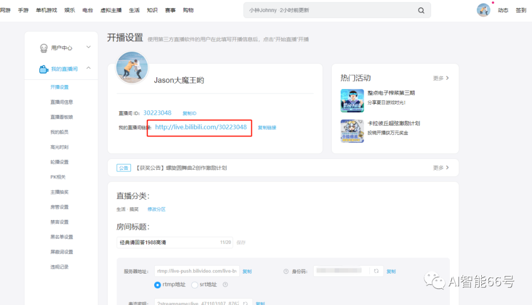 5、然后找到自己直播链接,进入就可以看到自己的无人直播了