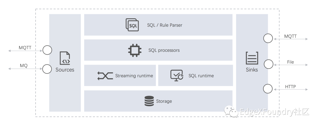 源(Source):流式数据的数据源,例如来自于 MQTT 服务器的数据。在 EdgeX 的场景下,数据源就是 EdgeX 消息总线(EdgeX message bus),可以是来自于 ZeroMQ 或者 MQTT 服务器;