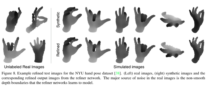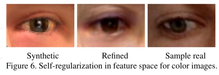 原始GANs生成的图片和真实图片差距比较大,因此用于训练的结果会不太好。而本文的方法更像是一个Refiner,根据unllabeled real data,去给synthetic data加细节,是的synthetic data更接近真实图片,并且能够保留synthetic data的annotation信息。