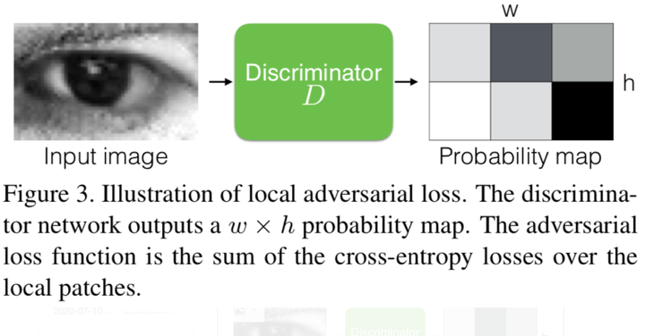 refiner network需要能够通过模型学习到真实图片的特征,但始终用tarin单个strong discriminator network时,模型会过于注重单张图片的特征。因此本文建立一个discriminator network来独立的对每个patch的图片进行分类。
