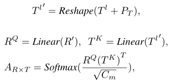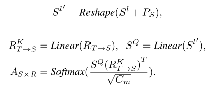 由于双工传输过程以对称方式进行,因此以第l个LBDT层中的temporal→language→spatial 传输过程为例(即上图)。对于运动聚合,首先添加2D正弦位置编码转换为时间特征,然后将其reshape为。注意力图计算了每个单词和每个像素之间的相似度: