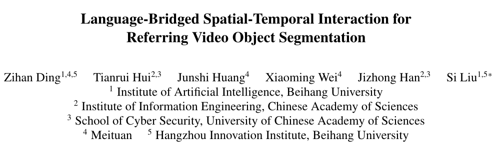 本篇分享 CVPR 2022 论文**『Language-Bridged Spatial-Temporal Interaction for Referring Video Object Segmentation』**,北航(刘偲团队)&信工所&美团提出LBDT,基于语言桥接的时空交互来进行准确指向性视频对象分割,性能SOTA!代码已开源!