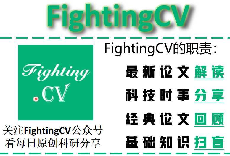 已建立深度学习公众号——FightingCV,关注于最新论文解读、基础知识巩固、学术科研交流,欢迎大家关注!!!