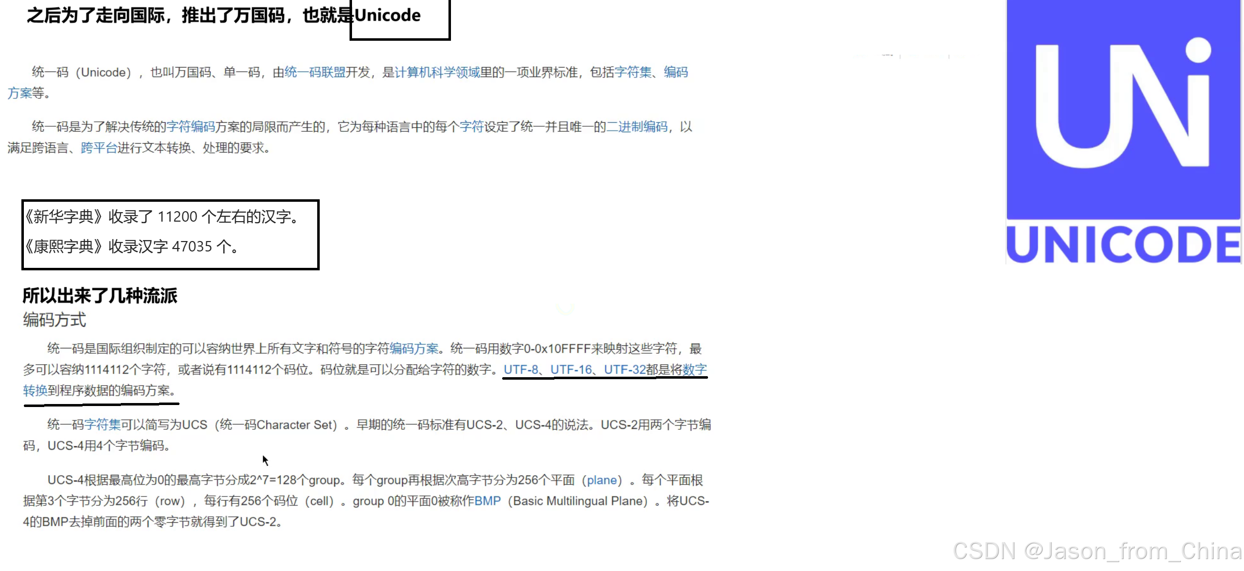 - 这个时候就不能使用ASCII码值进行表示,因为英文的表示比较简单,算上大小写字母数字和字符可能也就一百多个,但是来到中亚这边,包括中国周边的国家,他们受中国的影响比较深,所以这些国家的文字他们国家的语言啊也不是单单的一百多个能够表示的。