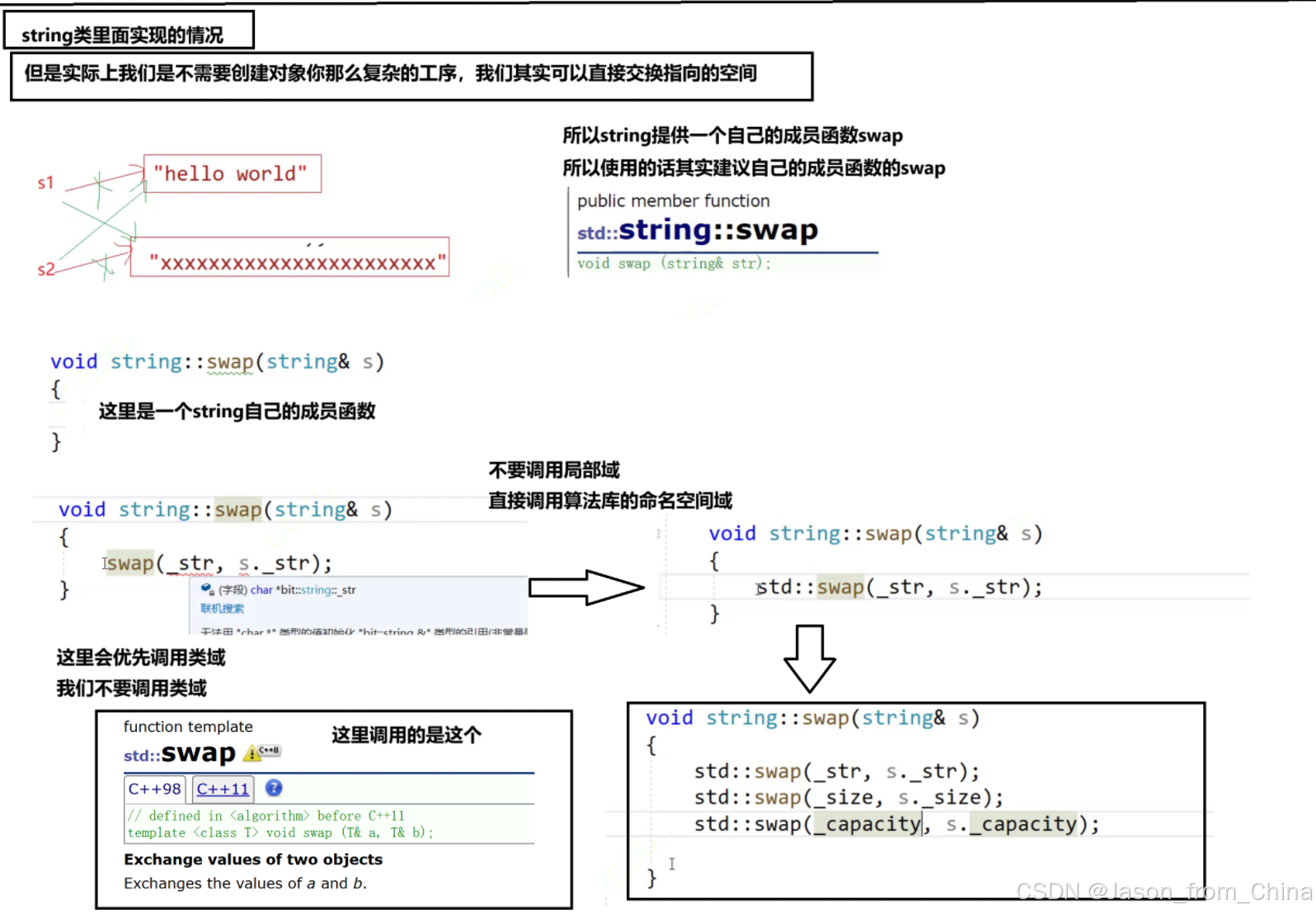 - 有人就疑问了,既然string里面已经有swap了,为什么还需要一个string的全局swap函数