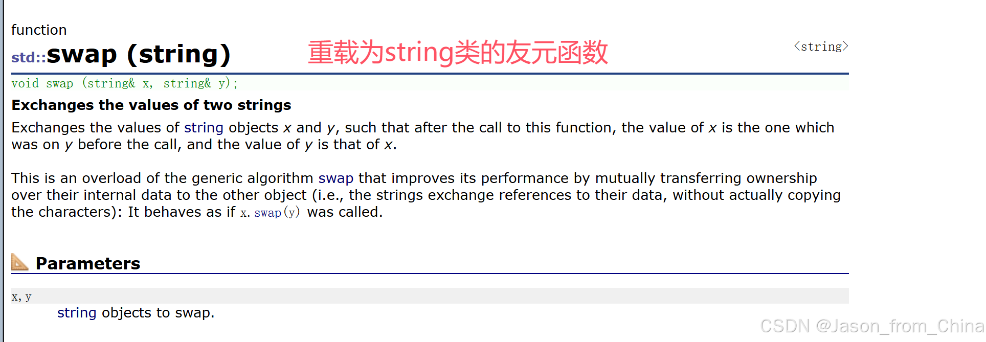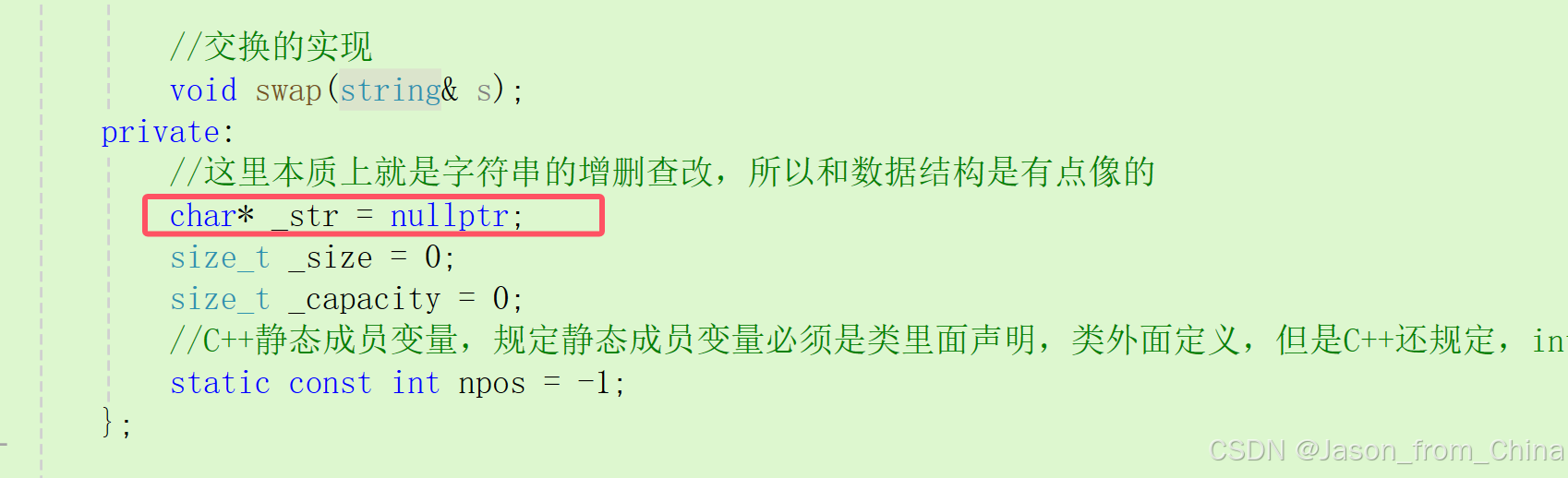 注意:这里是swap这里一定要加上std::swap,这里我们调用的是C++库里面的函数,不然会调用string库里面的函数//类里面的交换 void string::swap(string& s) { std::swap(_str, s._str); std::swap(_size, s._size); std::swap(_capacity, s._capacity); }string类里面的全局swap