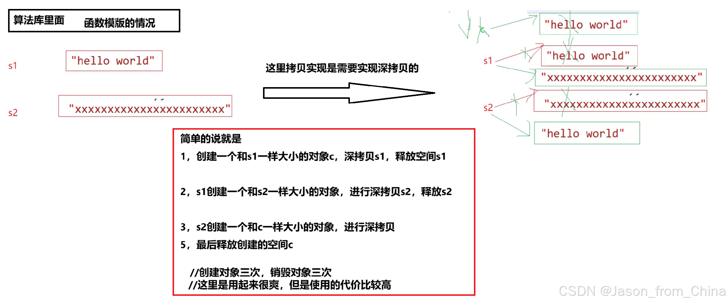 - 原因,算法库里面的swap是一个模版,泛函数编程,如果实现深拷贝就需要创建三次空间,销毁三次空间,所以这里虽然使用起来很爽,但是会使用代价很大