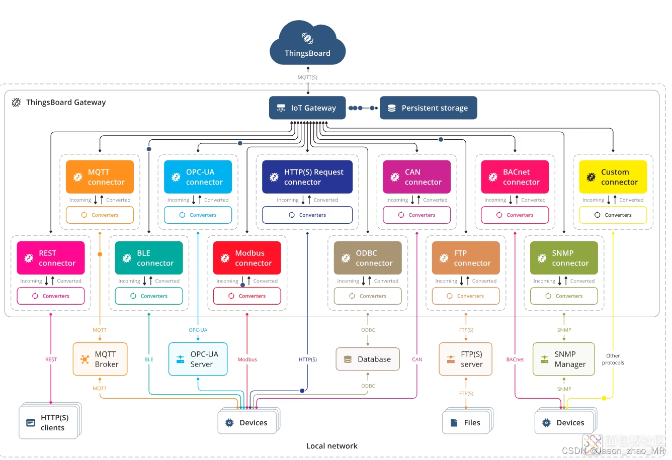 Thingsboard网关是一个开源的软件网关,采用python作为开发语言,可以部署在任何支持 python 运行环境的主机上,灵活性很高,修改代码相对比较方便。它可以作为一个数据采集、处理和转发的中间件,帮助用户轻松地将 物联网 设备接入到ThingsBoard平台。通过这个网关,用户可以在边缘设备上进行数据的处理和分析,减轻中心服务器的压力,并提高数据处理的效率。