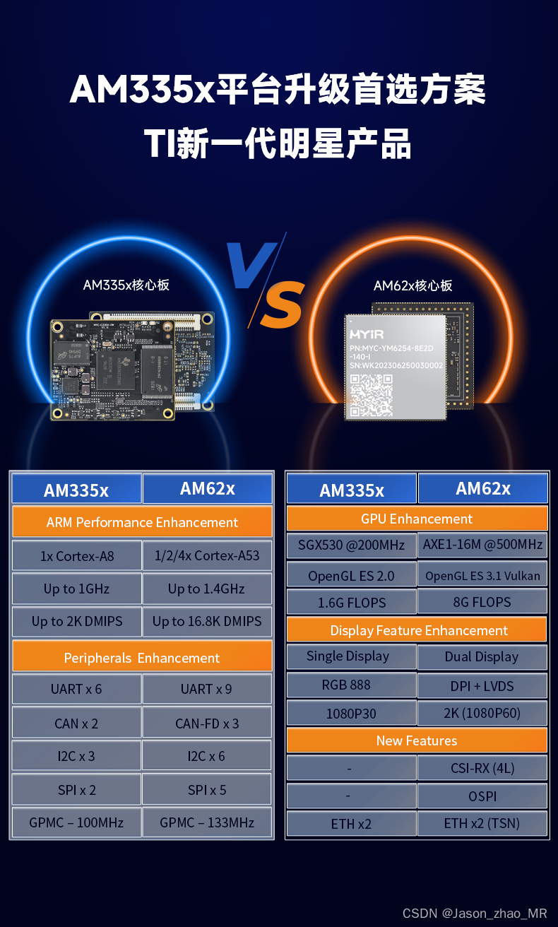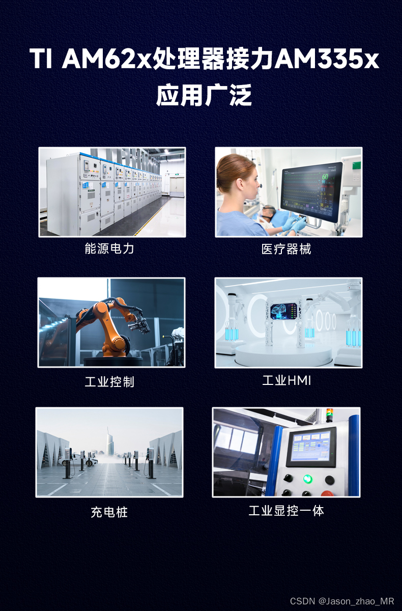 随着工业4.0的发展,人机交互、工业控制、医疗、新能源等领域的应用在处理器性能、外设资源、功耗、显示及安全等方面面临迫切的升级需求。为此,TI推出全新一代工业级MPU AM62x处理器,相较于上一代AM335x,AM62x在工艺、内核、外设、显示、安全等方面实现性能大升级,推动人机交互、工业控制、医疗、能源电力等应用的智能化发展。