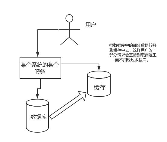 直接操作缓存能够承受的请求是远远大于直接访问数据库的,所以我们可以考虑把数据库中的部分数据转移到缓存中去,这样用户的一部分请求会直接到缓存这里而不用经过数据库。