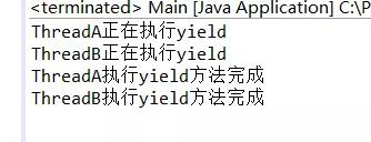 public class Main{ public static void main(String[] args) { Thread threadA = new Thread(new Runnable() { @Override public void run() { System.out.println("ThreadA正在执行yield"); Thread.yield(); System.out.println("ThreadA执行yield方法完成"); } }); Thread threadB = new Thread(new Runnable() { @Override public void run() { System.out.println("ThreadB正在执行yield"); Thread.yield(); System.out.println("ThreadB执行yield方法完成"); } }); threadA.setName("threadA"); threadB.setName("threadB"); threadA.start(); threadB.start(); }