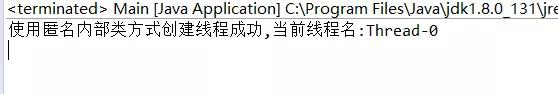 public class Main{ public static void main(String[] args) { Thread thread = new Thread(new Runnable() { @Override public void run() { // TODO Auto-generated method stub System.out.println("使用匿名内部类方式创建线程成功,当前线程名:"+Thread.currentThread().getName()); } }); thread.start(); } }