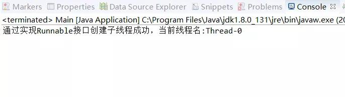 public class Main{ public static void main(String[] args) { SubThread subThread = new SubThread(); Thread thread = new Thread(subThread); thread.start(); } } class SubThread implements Runnable{ @Override public void run() { // TODO Auto-generated method stub System.out.println("通过实现Runnable接口创建子线程成功,当前线程名:"+Thread.currentThread().getName()); } }