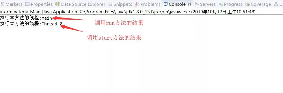 public class Main { public static void main(String[] args) { Thread thread = new Thread(new SubThread()); thread.run(); thread.start(); } } class SubThread implements Runnable{ @Override public void run() { // TODO Auto-generated method stub System.out.println("执行本方法的线程:"+Thread.currentThread().getName()); } }
