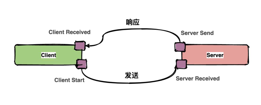 上图中描述了一次请求和响应的过程,四个点也就是对应四个Annotation事件。