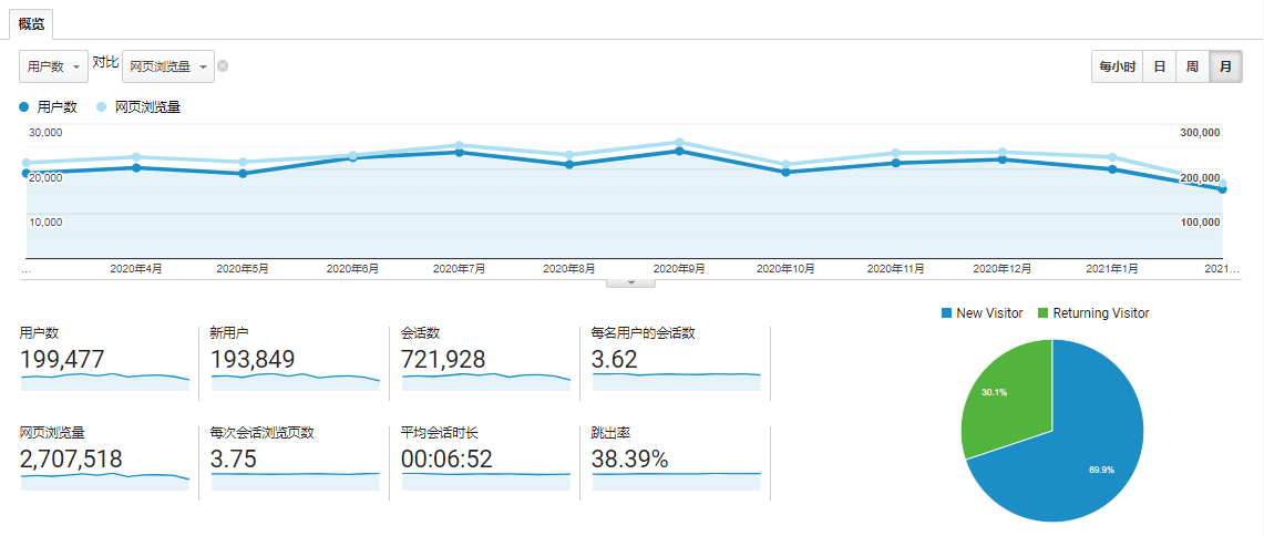 再看看我自己的博客网站,过去一年访问量270w+,访问量还是挺高的,看来我的文章确实是帮助到了很多人!网站地址:www.macrozheng.com/