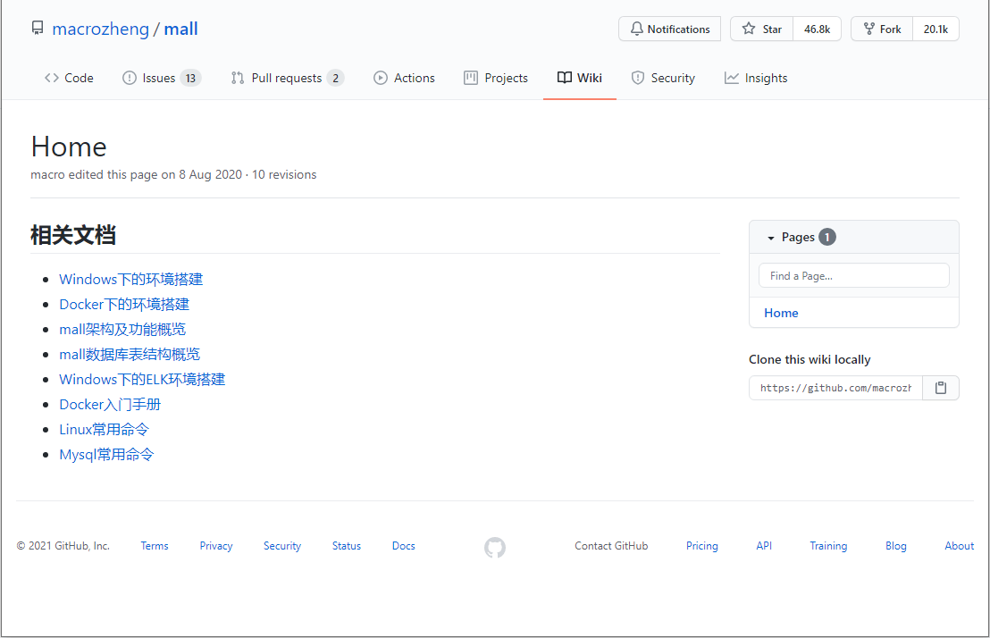 还记得mall项目中的wiki么?基本是我在写博客之前记录的笔记,不过现在都变成我的博客文章了。。。