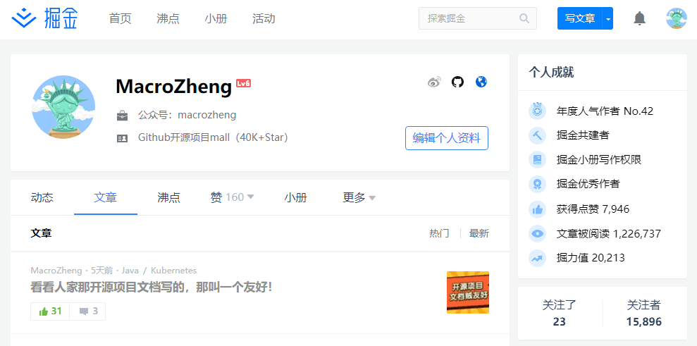 把自己的文章发到各大平台上去,帮助大家解决问题,看着文章的阅读量和大家的点赞收藏,其实还是挺有成就感的!比如我在掘金上面发的文章,已经有120w+阅读量,7000+点赞了。