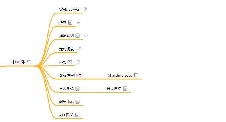 常见的的开源中间件有下面几种,组合起来就能搭建一个完整的分布式后台服务系统: