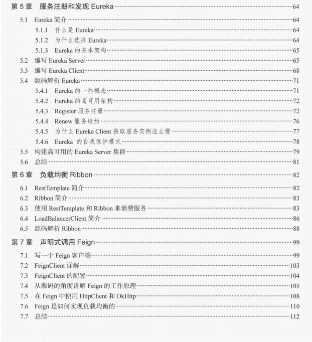 这一部分介绍了Spring Cloud框架的基础模块——Spring Cloud Netflix模块,涵盖了Spring Cloud构建微服务的基础组件。诸如Eureka、Ribbon、Feign、Hystrix和Zuul等组件为微服务系统提供了基本的服务治理能力。这几章以案例为切入点,由浅人深介绍这些组件,并从源码的角度分析这些组件的工作原理。