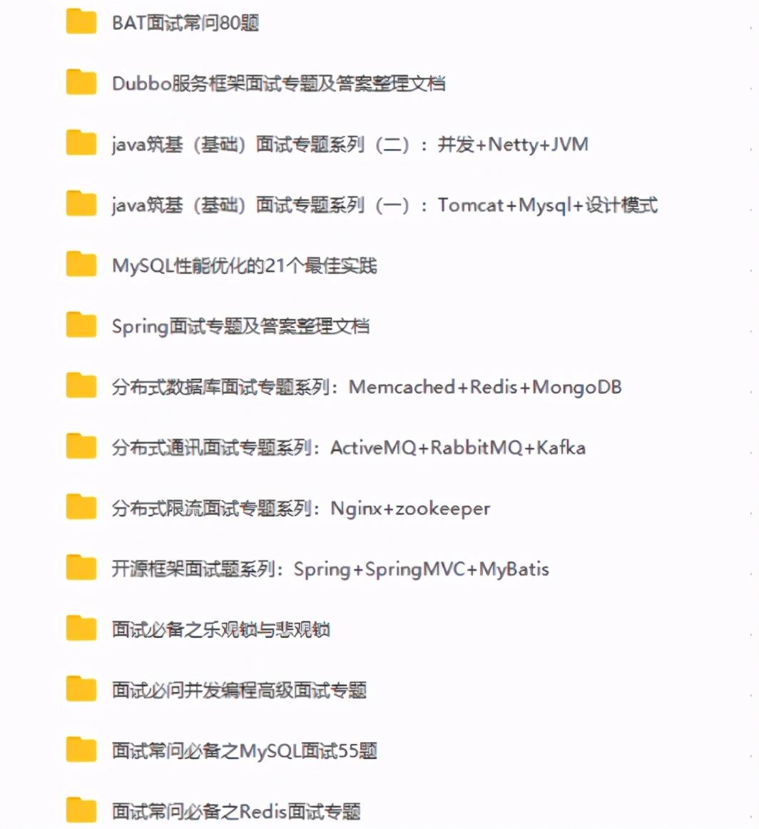 由于资料内容太多,平台篇幅限制,小编就展现了以上部分面试专题与资料,如需获取以下全部面试资料的同学,获取方式:转发+关注后台扫描小编的二维码即可来获取免费领取方式吧,感谢配合与信任!