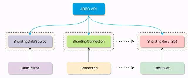 但其实对于开发人员而言,我们只关心如何调用 JDBC API 来访问数据库,只要正确使用 DataSource、Connection、Statement 、ResultSet 等 API 接口,直接操作数据库即可。所以如果想在 JDBC 层面实现数据分片就必须对现有的 API 进行功能拓展,而 Sharding-JDBC 正是基于这种思想,重写了 JDBC 规范并完全兼容了 JDBC 规范。