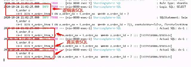 通过控制台日志发现,逻辑表SQL 经过解析以后,只对 t_order_0 和 t_order_item_0 表进行了关联产生一条SQL。