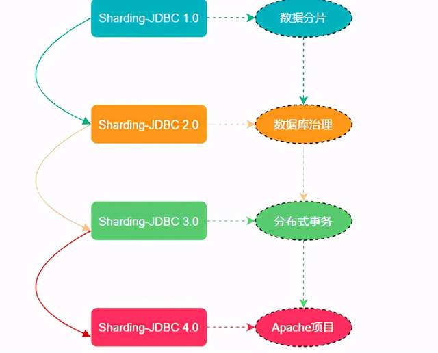 随着版本的不断更迭 ShardingSphere 的核心功能也变得多元化起来。从最开始 Sharding-JDBC 1.0 版本只有数据分片,到 Sharding-JDBC 2.0 版本开始支持数据库治理(注册中心、配置中心等等),再到 Sharding-JDBC 3.0版本又加分布式事务 (支持 Atomikos、Narayana、Bitronix、Seata),如今已经迭代到了 Sharding-JDBC 4.0 版本。