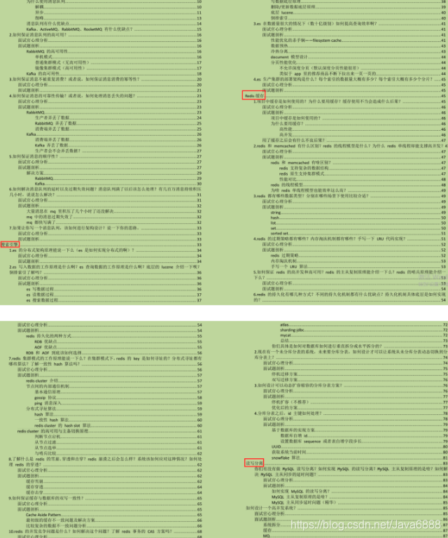 其次像MySQL+Redis+Kafka+并发等这些比较高阶一点的呢,可来刷刷高级一点的<Java进阶面试点集结>:消息队列+分库分表+读写分离+Redis缓存+分布式+高并发+高可用等等