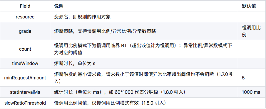熔断降级规则(DegradeRule)包含下面几个重要的属性: