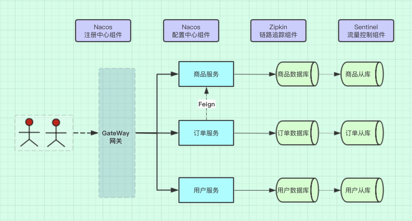 这里先附上一张图,到目前为止,Nacos注册中心、Nacos配置中心、Feign服务调用、Sentinel流量控制 在之前的博客都有写,项目中都有实现,这里也在之前
