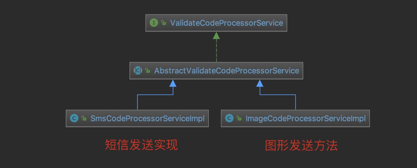 AbstractValidateCodeProcessorService 抽象类是用来实现两种验证码可以抽离的部分。ImageCodeProcessorServiceImpl 和