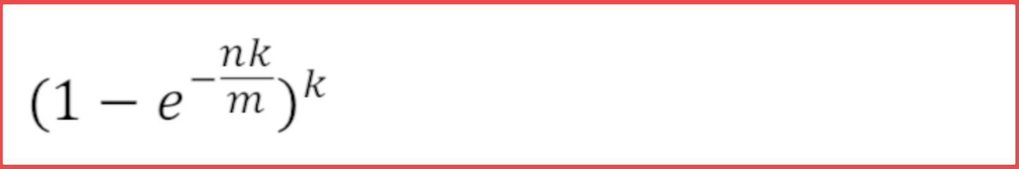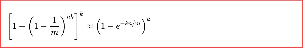 因为当一个布隆过滤器中不存在的元素进来的是的时候,首先通过hash算法产生k个哈希值,分布在m数组上都为1的的概率不就是上面推导出的这个公式吗,那不就是误差吗?