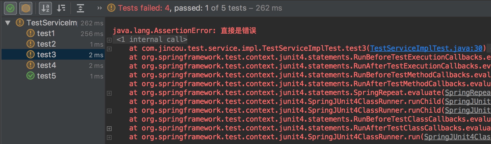 我们在写单元测试的时候,除了接口直接抛异常而导致该单元测试失败外,还有种是业务上的错误也代表着该单元测试失败。好比我们在测试接口的时候,
