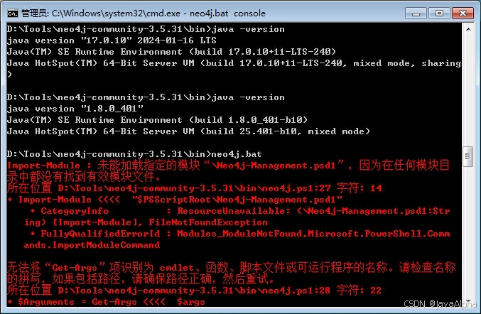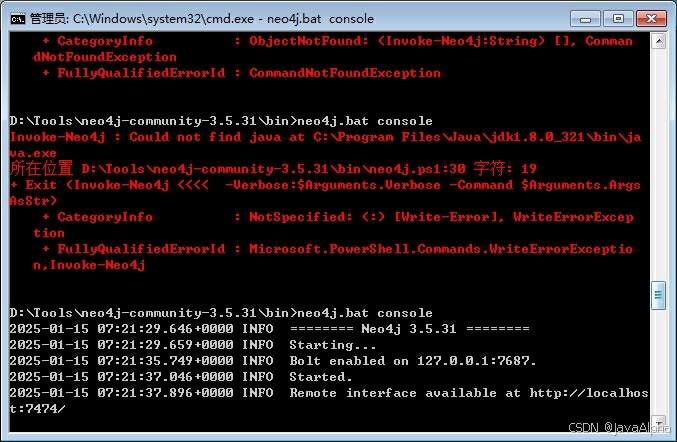 环境说明: 1.win7 2.jkd 1.8 3.neo4j-community-3.5.31 启动异常: 解决方法: 修改安装文件配置路径为绝对路径: 启动: 参考:windows下NEO4J安装报错_neo4j安装提示找不到文件-优快云博客